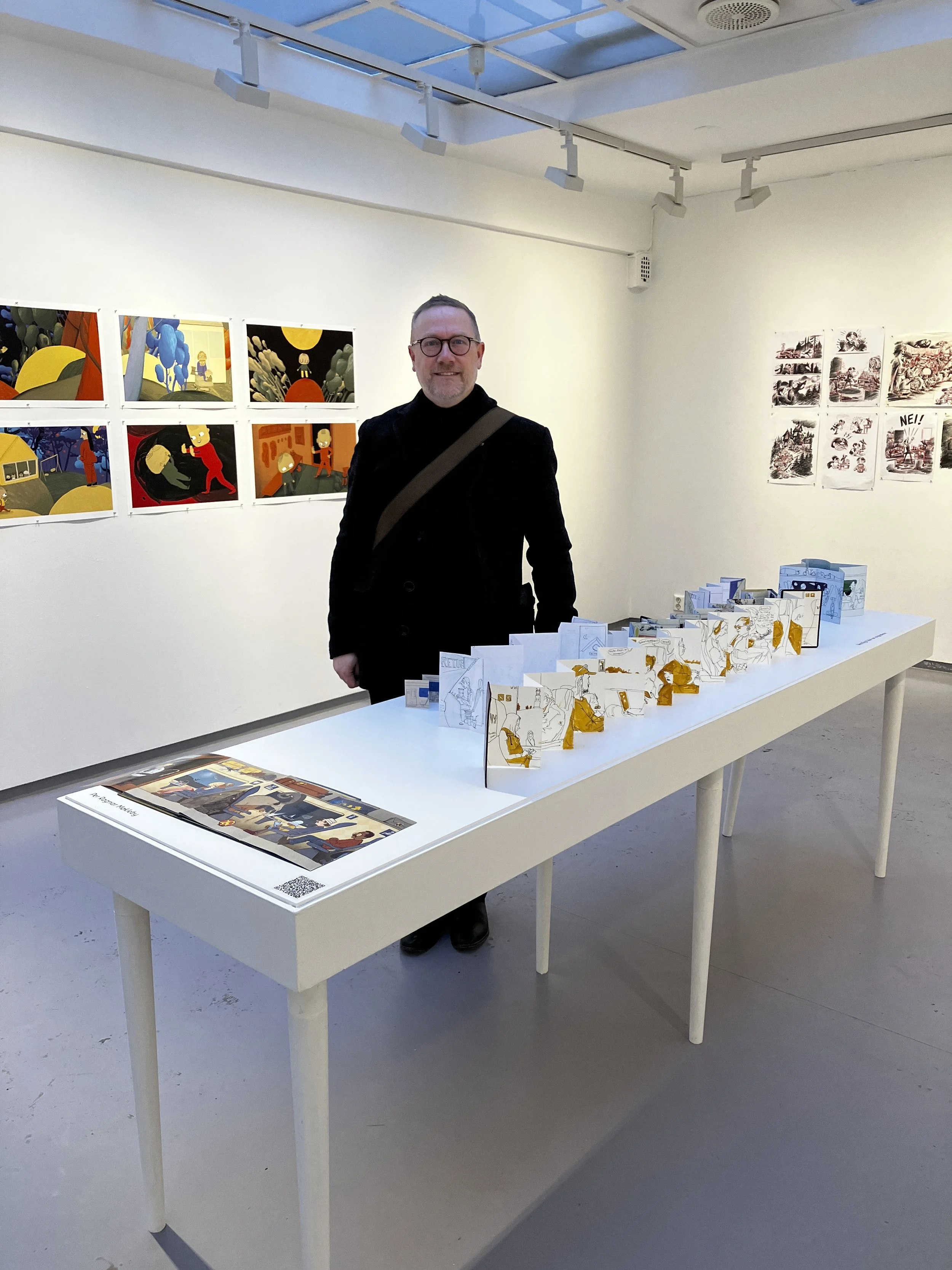 På toppen av dette ble boka valgt ut til Tegnerforbundets utvalgte 2025! Der er den nå utstilt sammen med mange flotte bildebøker og tegneserier og de har til og med laget videopresentasjoner av oss alle! Det er en kjempefin utstilling med fokus på prosess som står til uti mars. Anbefales!